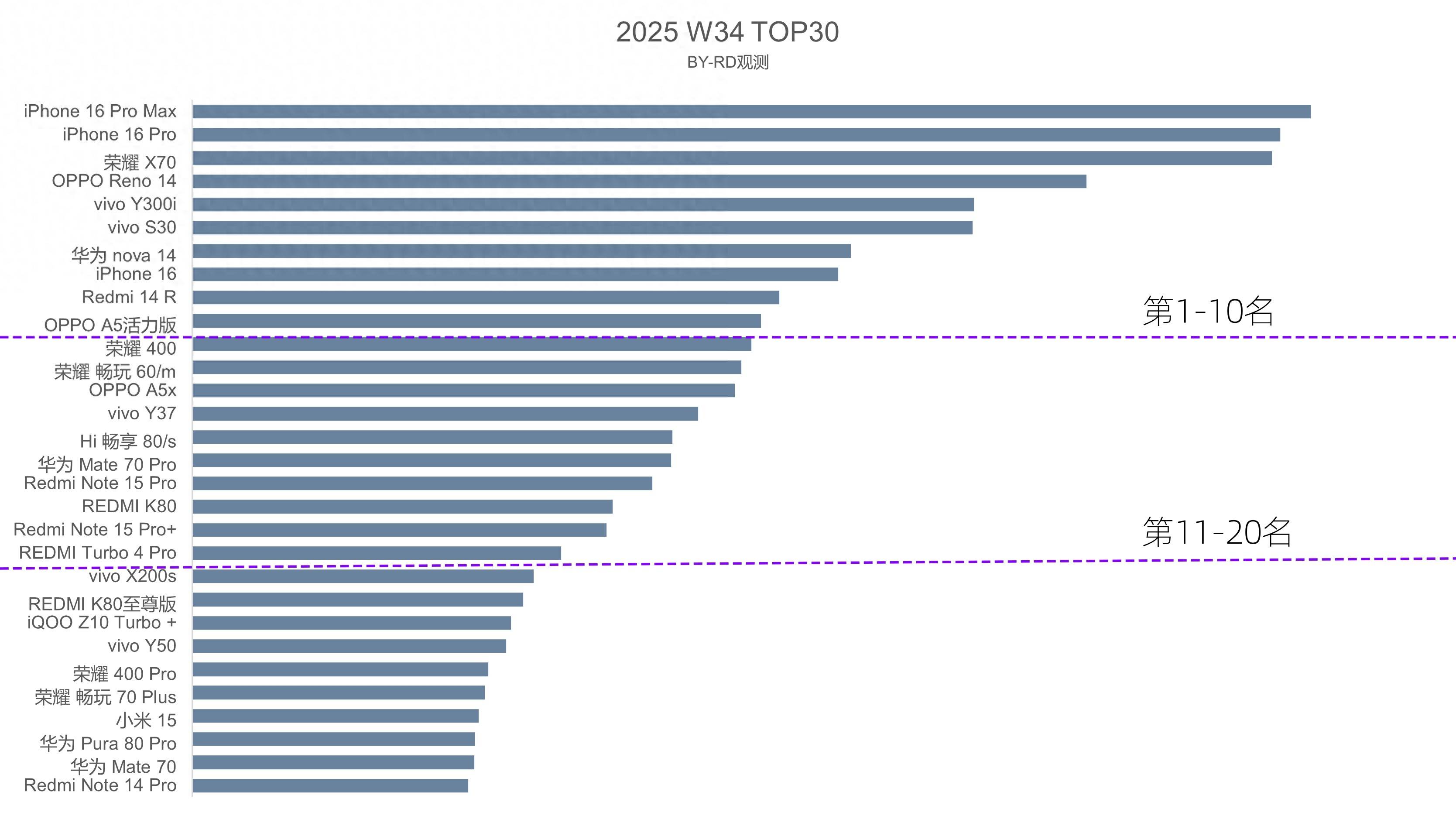 中国智能手机畅销榜更新:iPhone16仅排第八第一名不再遥遥领先